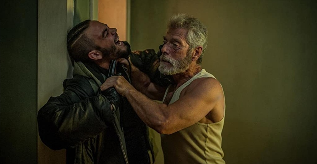 Al principio claramente te va a dar pena, un señor mayor, veterano de guerra, que está ciego y vive solo en su casa, al cual van a robar tres adolescentes sin vergüenza. Es inevitable sentir lástima por él. Pero ya desde que mata a Money (no es spoiler, que sale en el trailer), ya se empieza sumar a Alex y a su difunto amigo para que no te importe si sobrevive o no.
